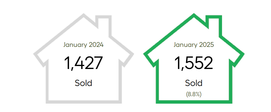 Despite the surge in new listings, residential sales also experienced an uptick. A total of 1,552 homes were sold in January 2025, marking an 8.8% increase from the 1,427 sales in January 2024. However, this sales figure remained 11.3% below the 10-year seasonal average of 1,749.